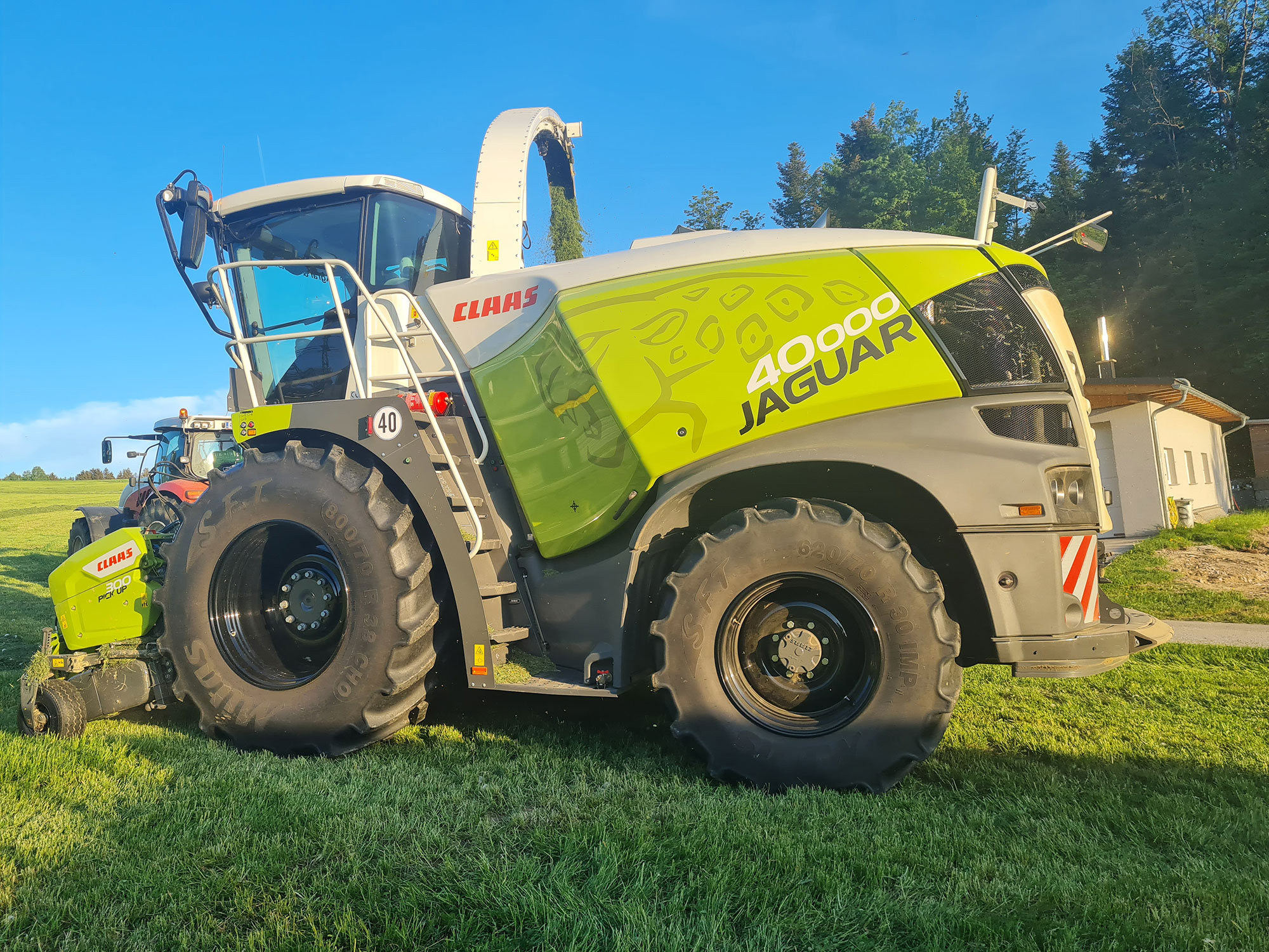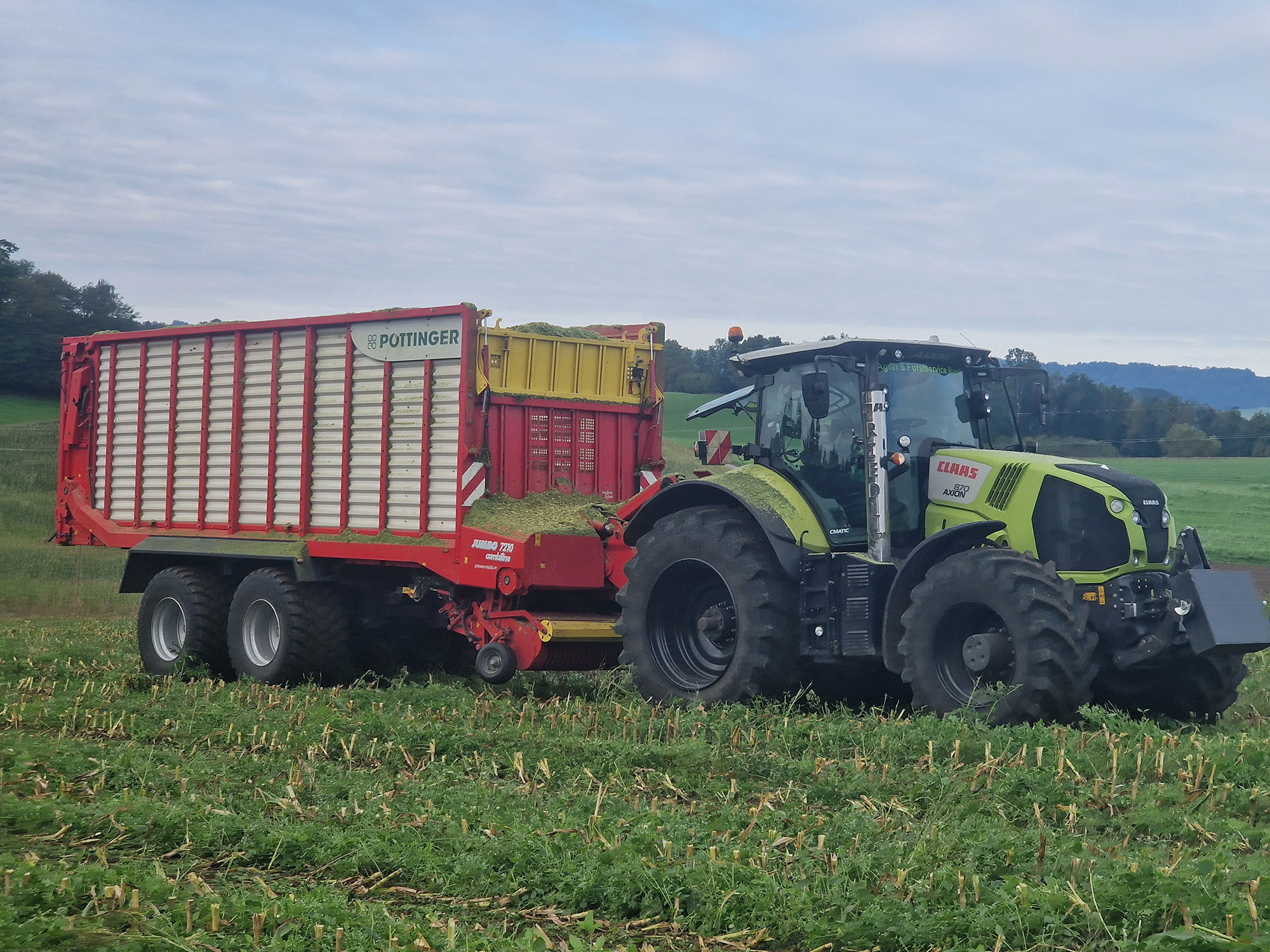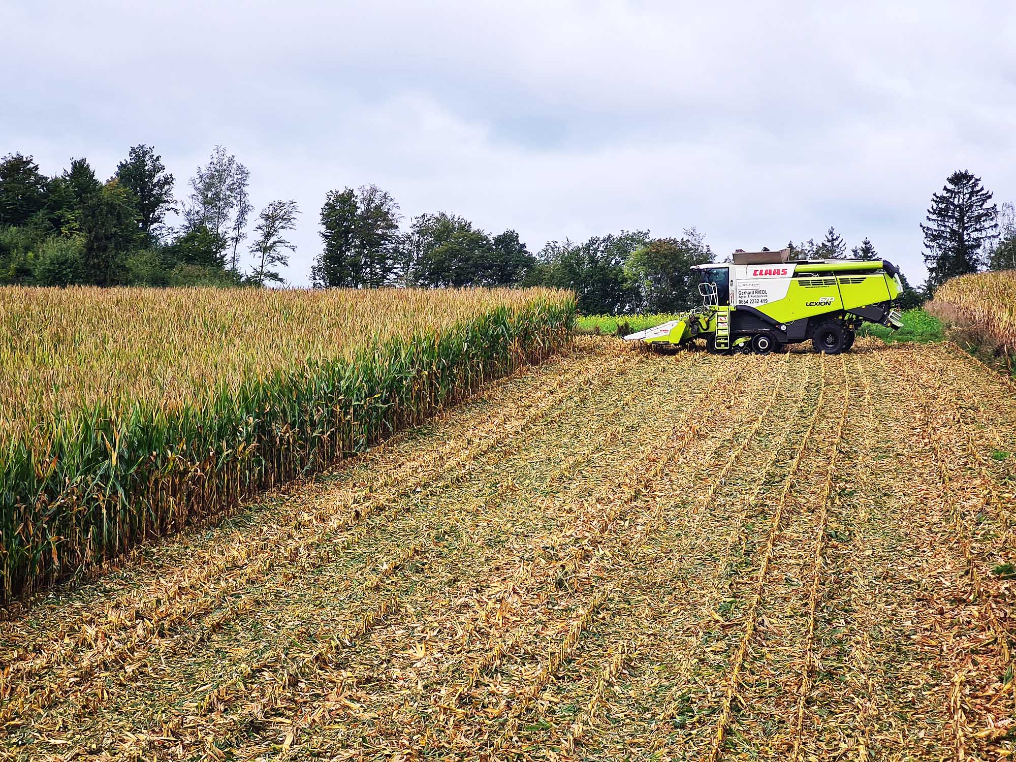 Mit unserem Feldhäcksler und 8- reihigem Maisvorsatz erzeugen wir beste Häckselqaulität.
