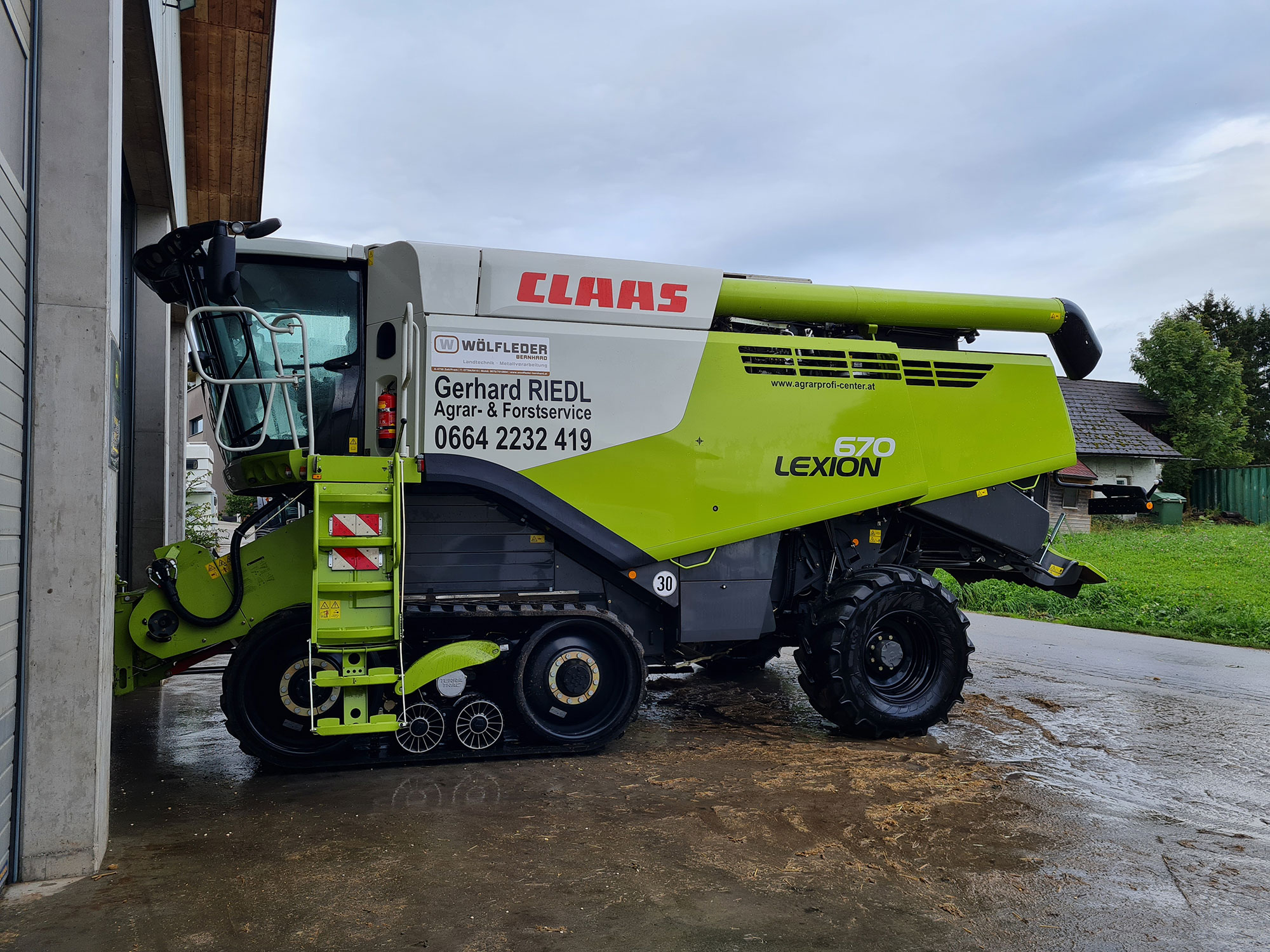 Der Lexion 670 ist dem sehr leistungsstark Maschinensegment der Mähdrescher zuzuordnen. Die Korntankgröße dieses Modells beträgt 11000l. Der Lexion ist mit einer Schneidewerkbreite von 6.7m ausgestattet.